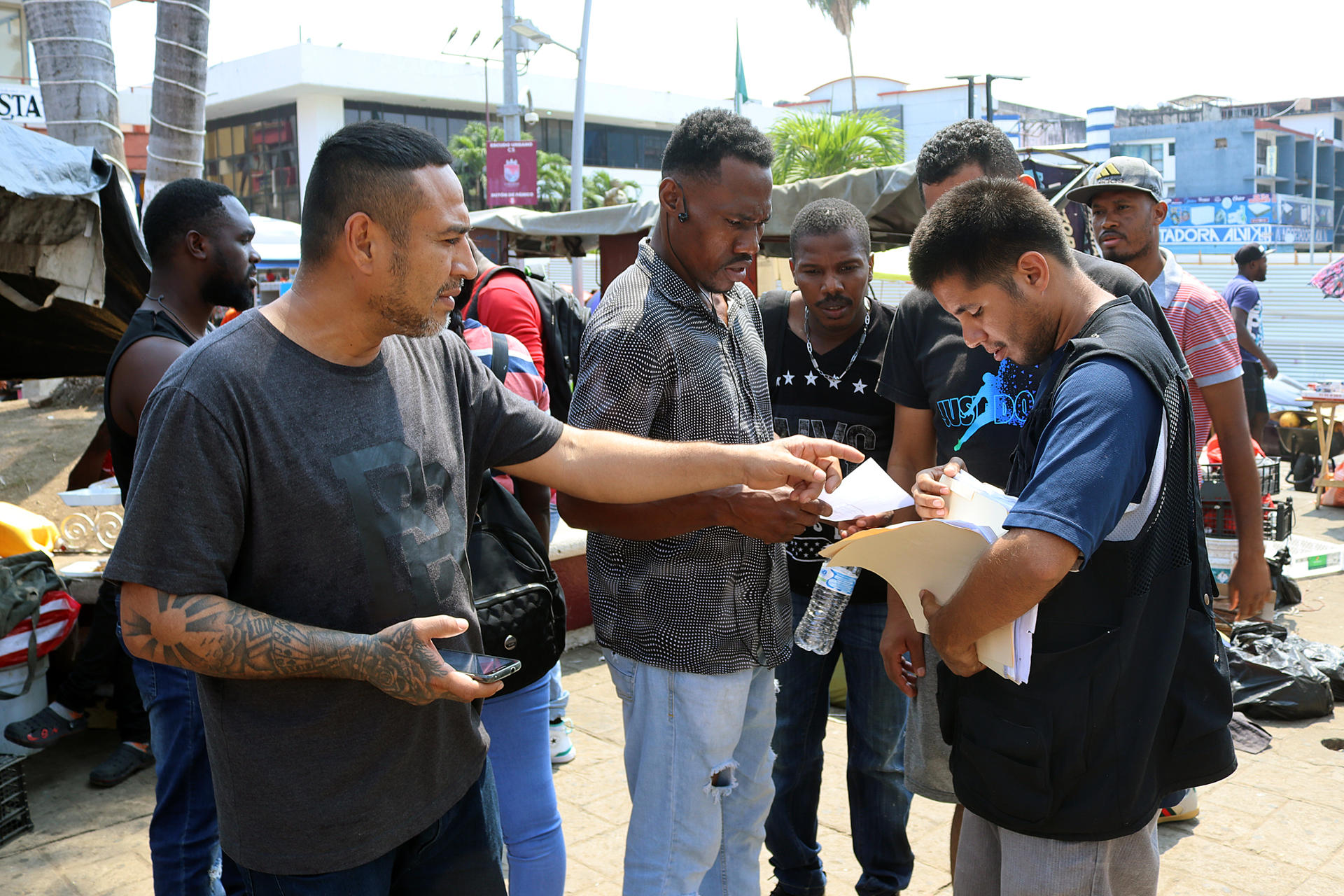 MEX2268. TAPACHULA (MÉXICO), 15/04/2023.- Migrantes permaneces en un parque publico para preparar su salida a un "Viacrucis migrante", hoy en la ciudad de Tapachula, en el estado de Chiapas (México). Los integrantes del "viacrucis" de migrantes que partirá este 23 de abril de Tapachula y recorrerá unos 1.000 kilómetros a la Ciudad de México, pidieron a la Comisión Nacional de los Derechos Humanos (CNDH) en el país, que les brinde protección y medidas cautelares para evitar peligros, riesgos y accidentes en su tránsito. EFE/ Juan Manuel Blanco