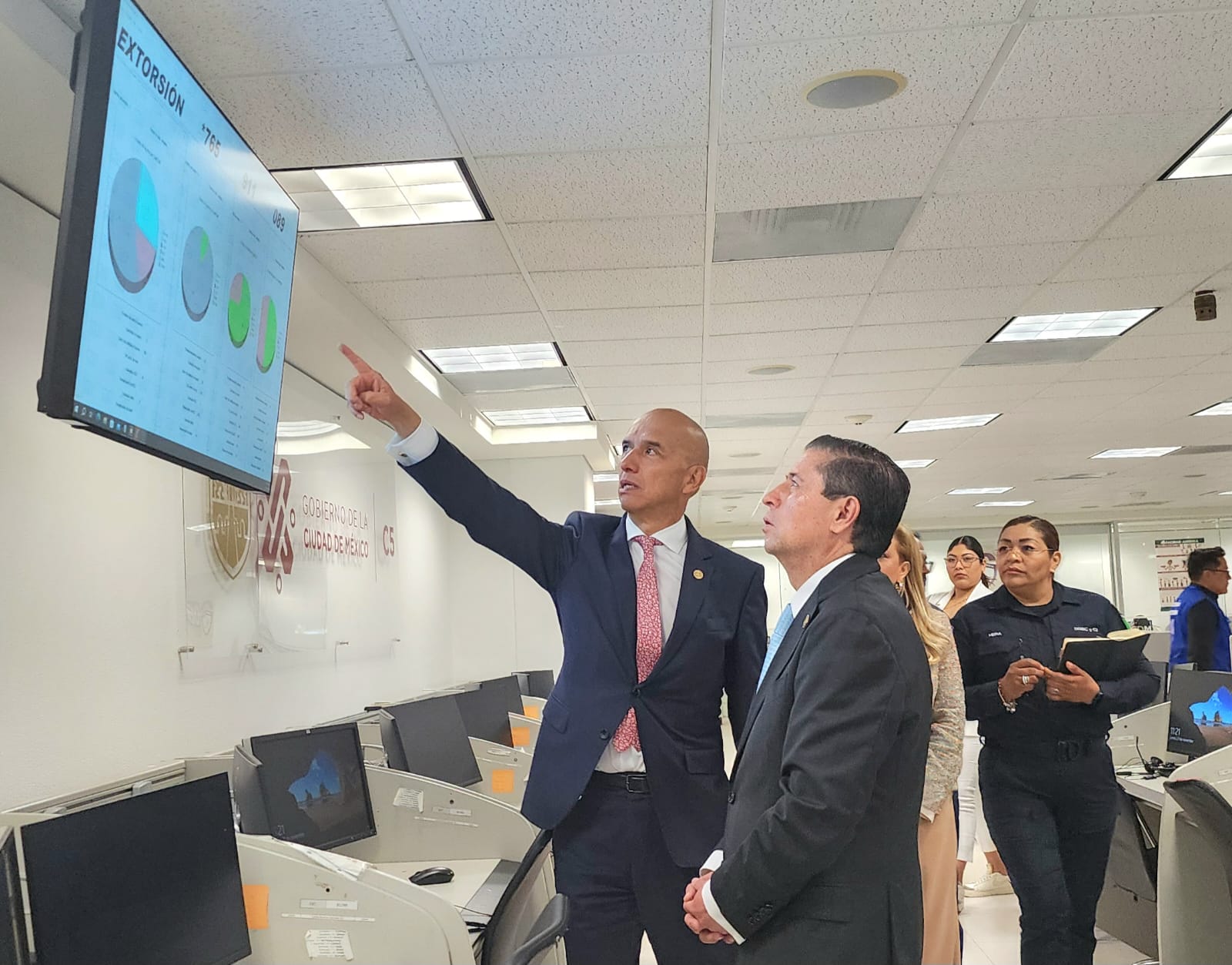 El Titular Coordinador General del C5, Salvador Guerrero Chiprés, le mostró las instalaciones, realizaron un recorrido por las diferentes áreas y explicó la forma en que opera el centro que atiende las emergencias en la Ciudad de México.