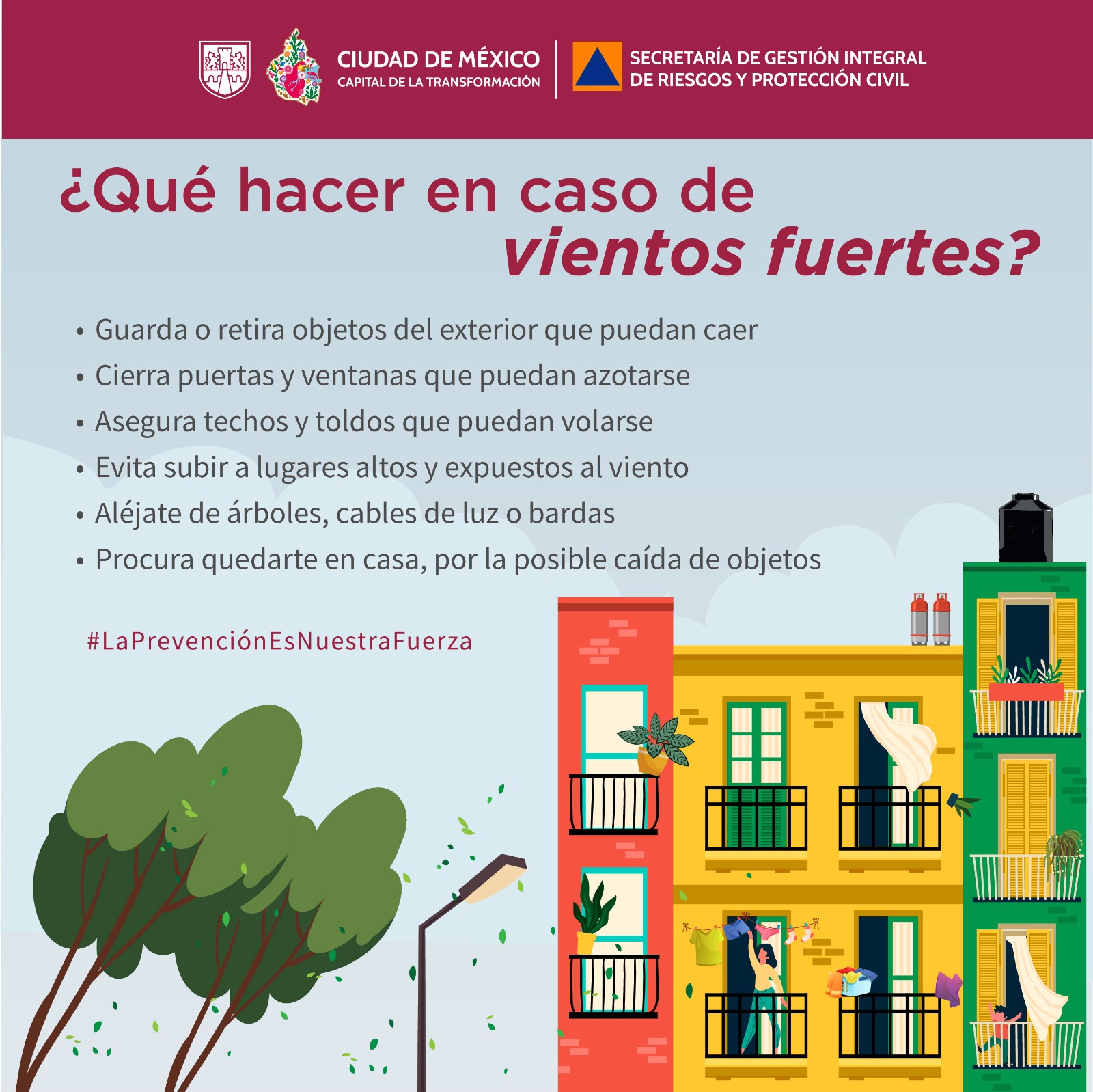 Por ello se recomienda a la población guardar o retirar objetos que puedan caer por la acción de los vientos; evitar subir a azoteas, andamios o cornisas; manténgase alejado de postes de telefonía móvil o eléctricos, así como, extremar precauciones al conducir por la posible caída de ramas o árboles.