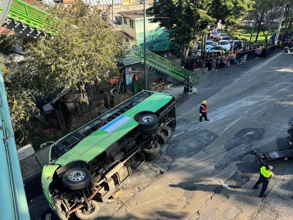 La mañana de este viernes 22 de noviembre, se registró la volcadura de un camión de pasajeros (los que sustituyeron a los llamados microbuses), a la altura del kilómetro 21 de la carretera federal México-Cuernavaca, en la alcaldía Tlalpan, dejando como saldo 32 personas lesionadas, las cuales fueron trasladadas a distintos centros hospitalarios.