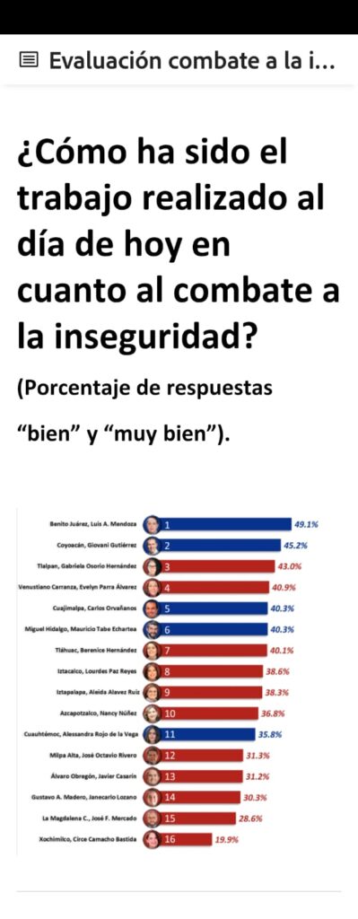 En consecuencia, a casi ocho meses de su gobierno, la población de Xochimilco reprueba su trabajo al frente de la Alcaldía como la peor demarcación con apenas 27.3 de aceptación.