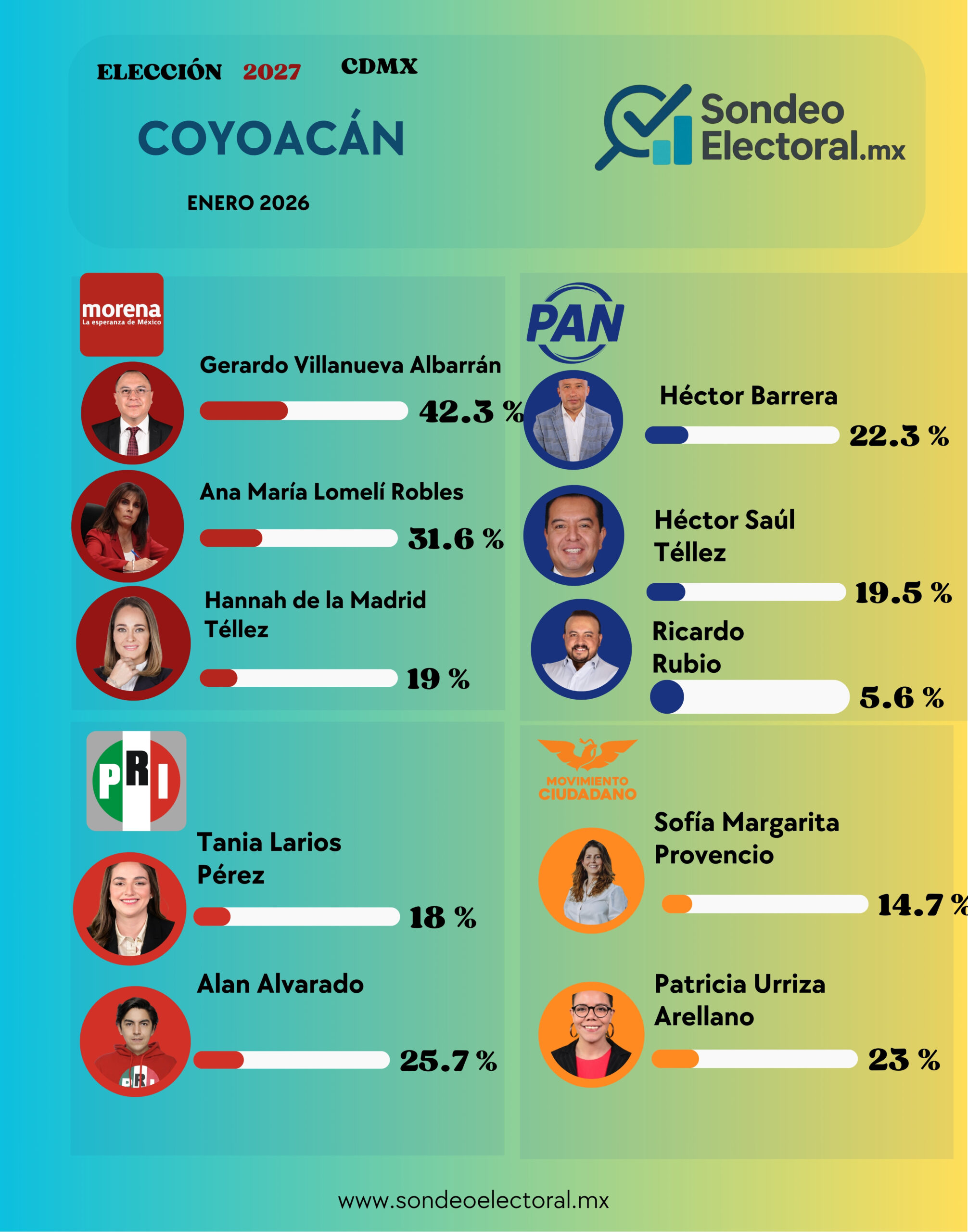 - Villanueva se despega en Morena; Barrera cae en el PAN; PRI y MC reordenan sus fichas rumbo a la definición de candidaturas en Coyoacán