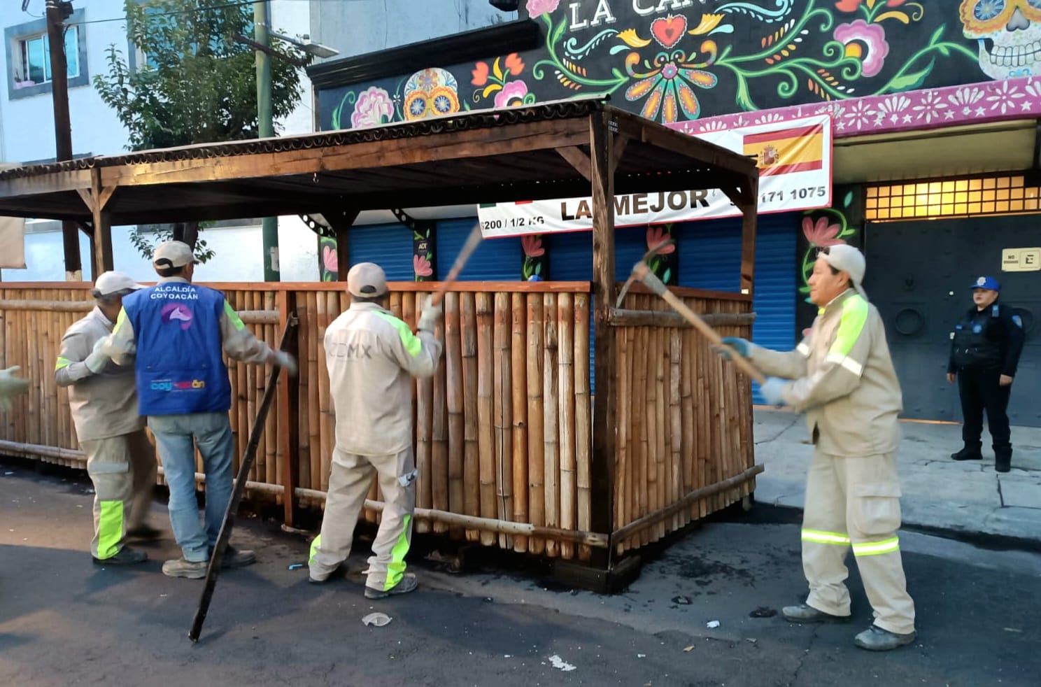 Debido a ello y en apego a la norma, la alcaldía Coyoacán comenzó con el retiro de estas estructuras las cuales habían sido empotradas en banquetas, pavimento, banquetas, maceteros, marquesinas y demás objetos en vía pública por lo que se utilizó equipo especial para desmontar estas estructuras hechas, sobre todo, de metal, madera, acrílico y hasta bambú.