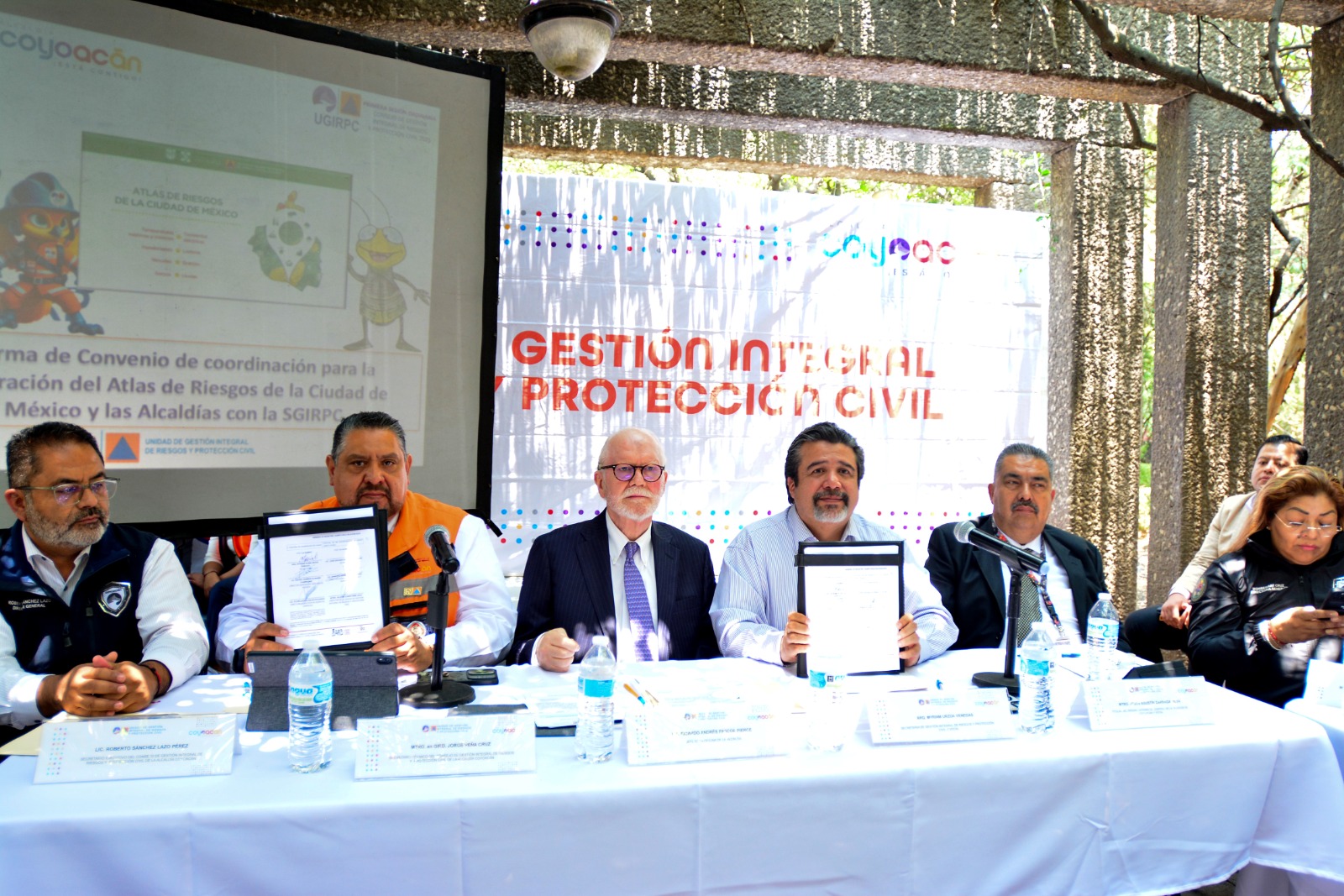 CDMX, 27 mayo 2025 (NOTICIASCOYOACAN.MX).- La alcaldía Coyoacán firmó el convenio de coordinación para la integración del Atlas de Riesgos de la Ciudad de México y las Alcaldías junto con la Secretaría de Gestión Integral de Riesgos y Protección Civil (SGIRPC) a fin de establecer las bases de colaboración para conformar este instrumento, que consiste en un sistema integral de información sobre daños y pérdidas esperadas.