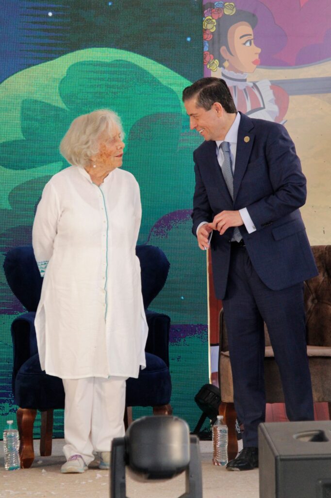 “En la vida yo creo que no hay mejor amante o mejor compañero o mejor marido que un libro, porque un libro lo puede uno cerrar cuando uno quiere, y también abrir cuando a uno se le antoja”, lo que provocó las risas y los aplausos de los invitados. “Los felicito a todos, se ven muy bonitos, los felicito a todos por estar aquí y me felicito porque ya tengo 93 años, ojalá y el año que entra los pueda acompañar”, comentó.