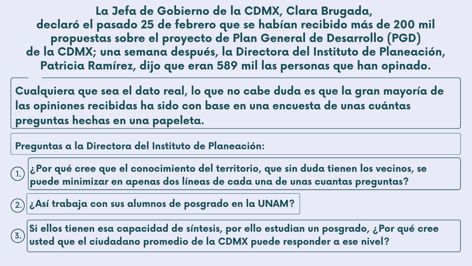 Desde el Instituto de Planeación Democrática y Prospectiva se insiste en que el proceso fue abierto y plural. Pero en paralelo, crece una narrativa ciudadana que ya no se puede contener: