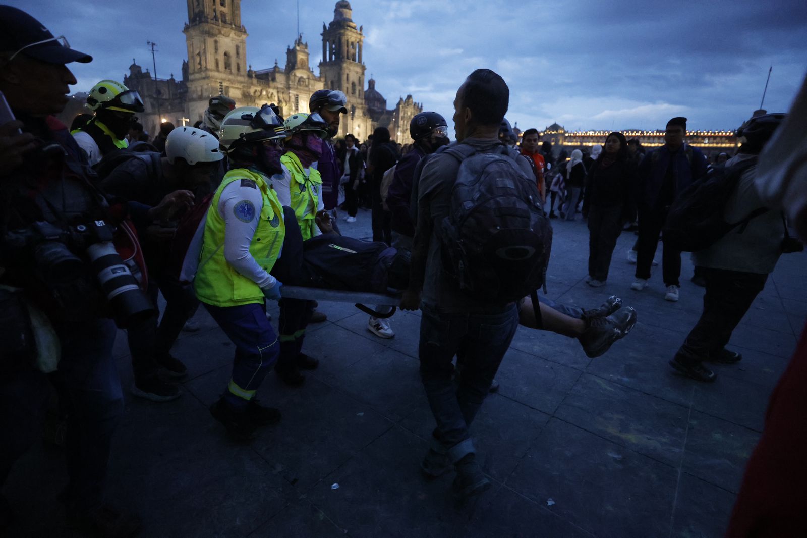 Al ingresar al Zócalo capitalino, la vanguardia encabezada por el Comité del 68 y estudiantes fueron recibidos con gases lacrimógenos. El grupo conocido como bloque negro respondió a la ofensiva lanzando piedras, cristales y bombas molotov, situación que provocó el enfrentamiento entre uniformados y encapuchados.