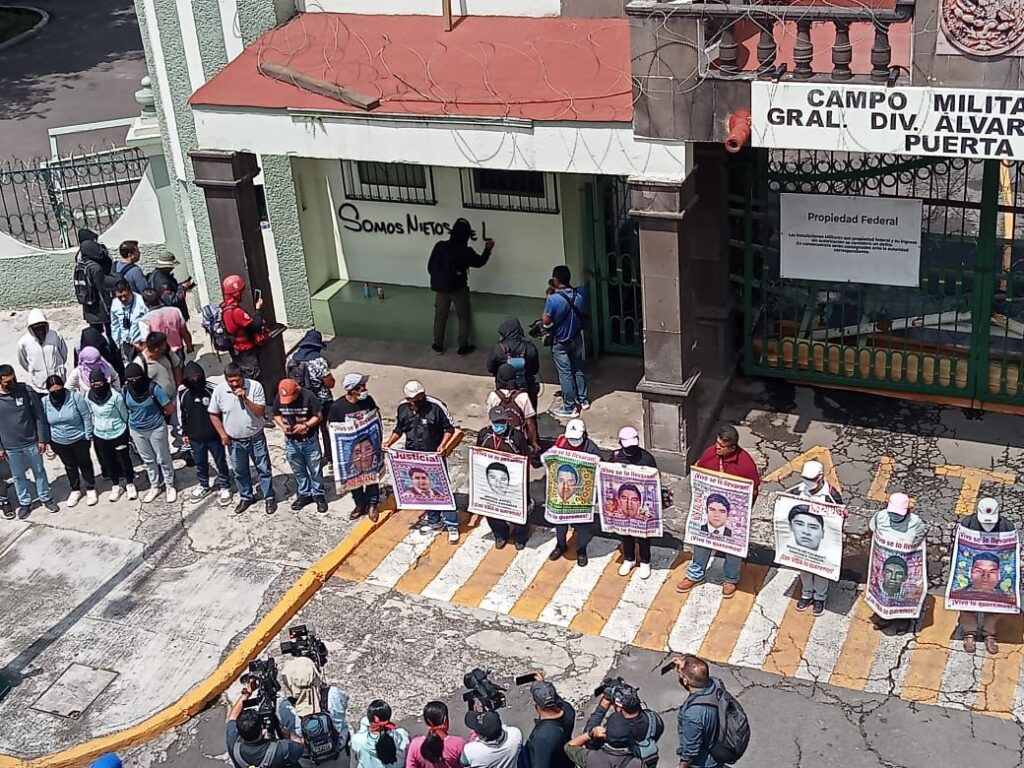 La protesta es parte de la presión que desde hace más de una década ejercen los familiares de los normalistas desaparecidos, quienes acusan al Ejército mexicano de ocultar información sobre la noche del 26 de septiembre de 2014, cuando los jóvenes fueron atacados y desaparecidos en Iguala, Guerrero.