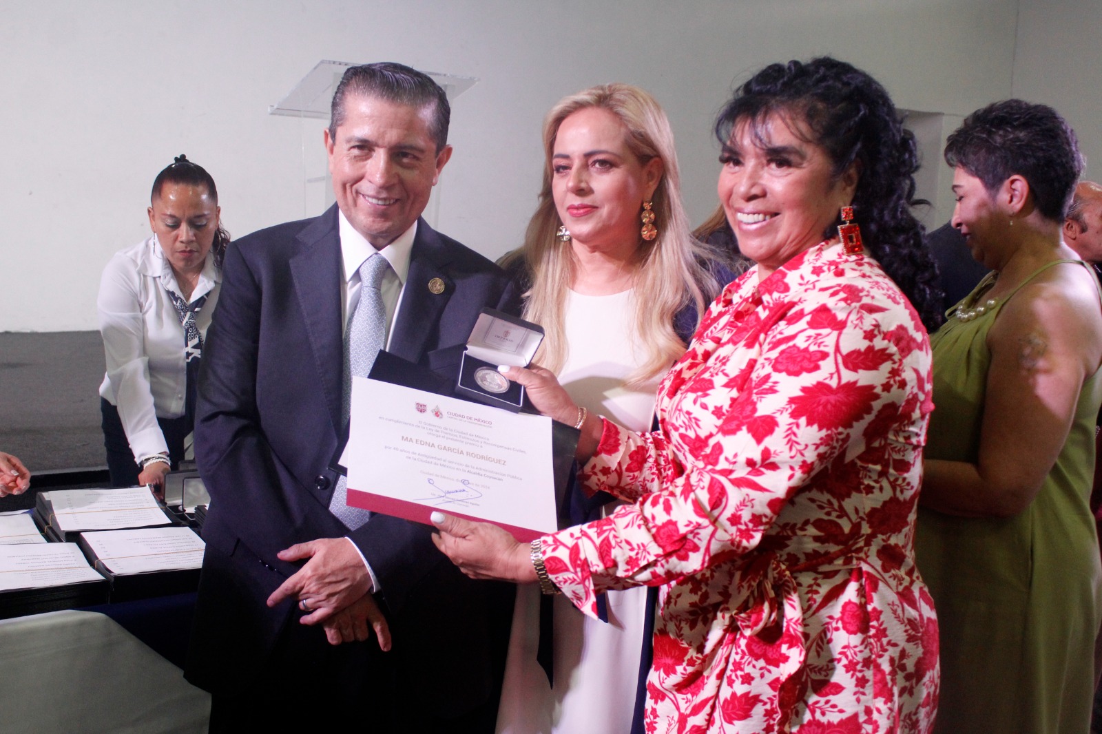 Ustedes son quienes, jornada a jornada, ponen en alto los más profundos principios y valores del servicio público. Su entrega es indispensable para el correcto funcionamiento del buen gobierno”, les dijo el Alcalde durante un desayuno en donde se les entregó un reconocimiento, una medalla y un incentivo económico a quienes han laborado en el servicio público con antigüedades que comprenden 25, 28, 30, 40, 50 y 60 años de trabajo en la alcaldía.