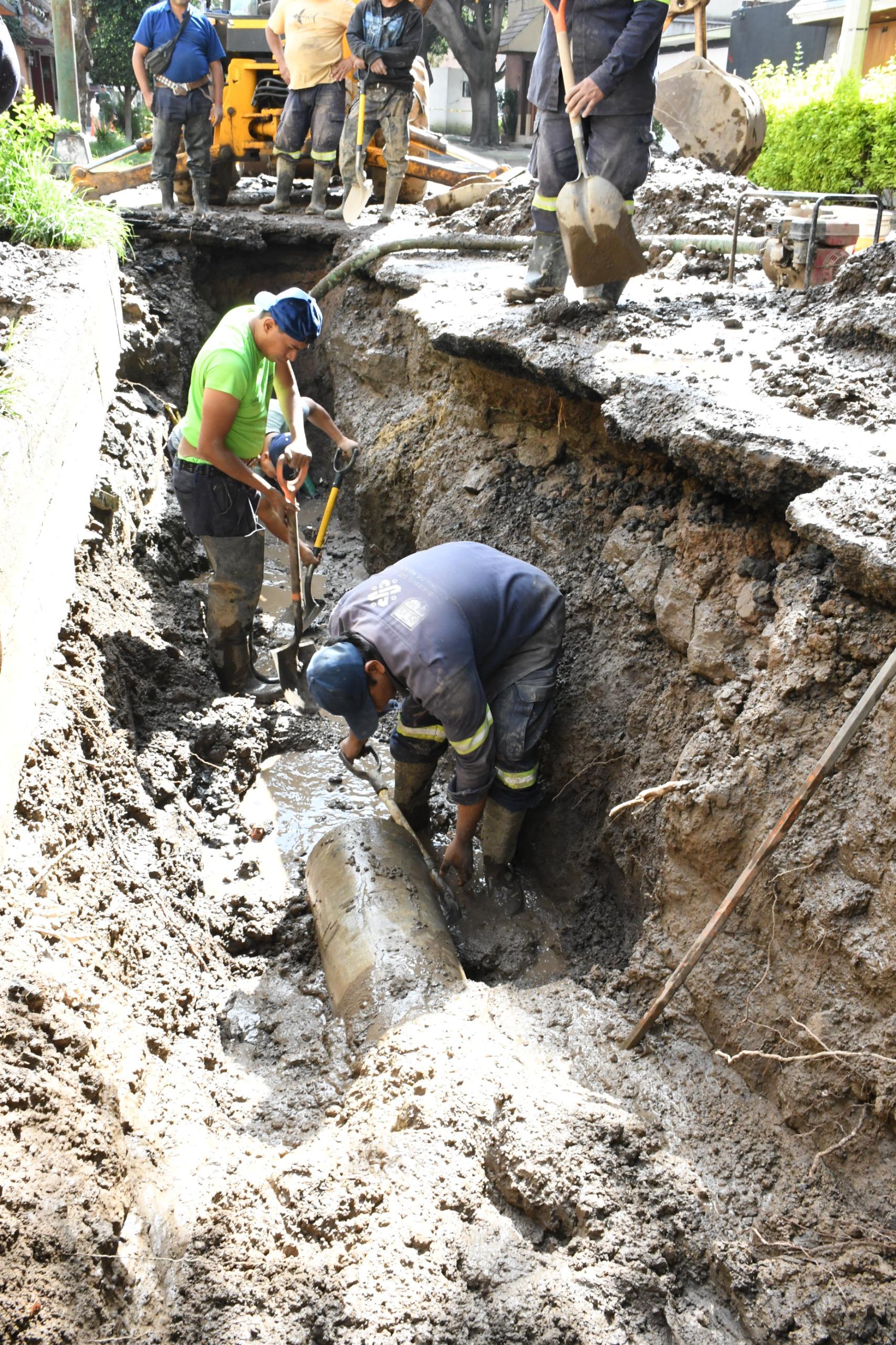 El tubo afectado, de 12 pulgadas de diámetro, superó su vida útil y presentó una fractura derivada del aumento de presión en el suministro. Los trabajos se realizan sobre la calle Nevado, donde se reemplazará el antiguo conducto de asbesto por uno de Poliuretano de Alta Densidad (PAD), lo que permitirá mejorar el servicio y alargar la vida útil del sistema hidráulico.