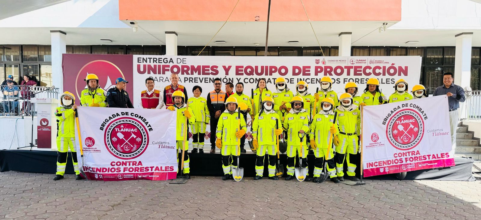 CDMX, 27 febrero 2025 (XOCHINEWS.COM).- Al entregar uniformes con protección térmica, incluso resistentes en condiciones extremas de calor, a los integrantes de la Brigada de Combate contra Incendios Forestales de la Alcaldía Tláhuac, la titular de la demarcación, Berenice Hernández, reconoció la heroica labor que estos desarrollan en el combate a los siniestros que afectan tanto el suelo rural como el suelo de conservación, en laderas, barrancas y canales.