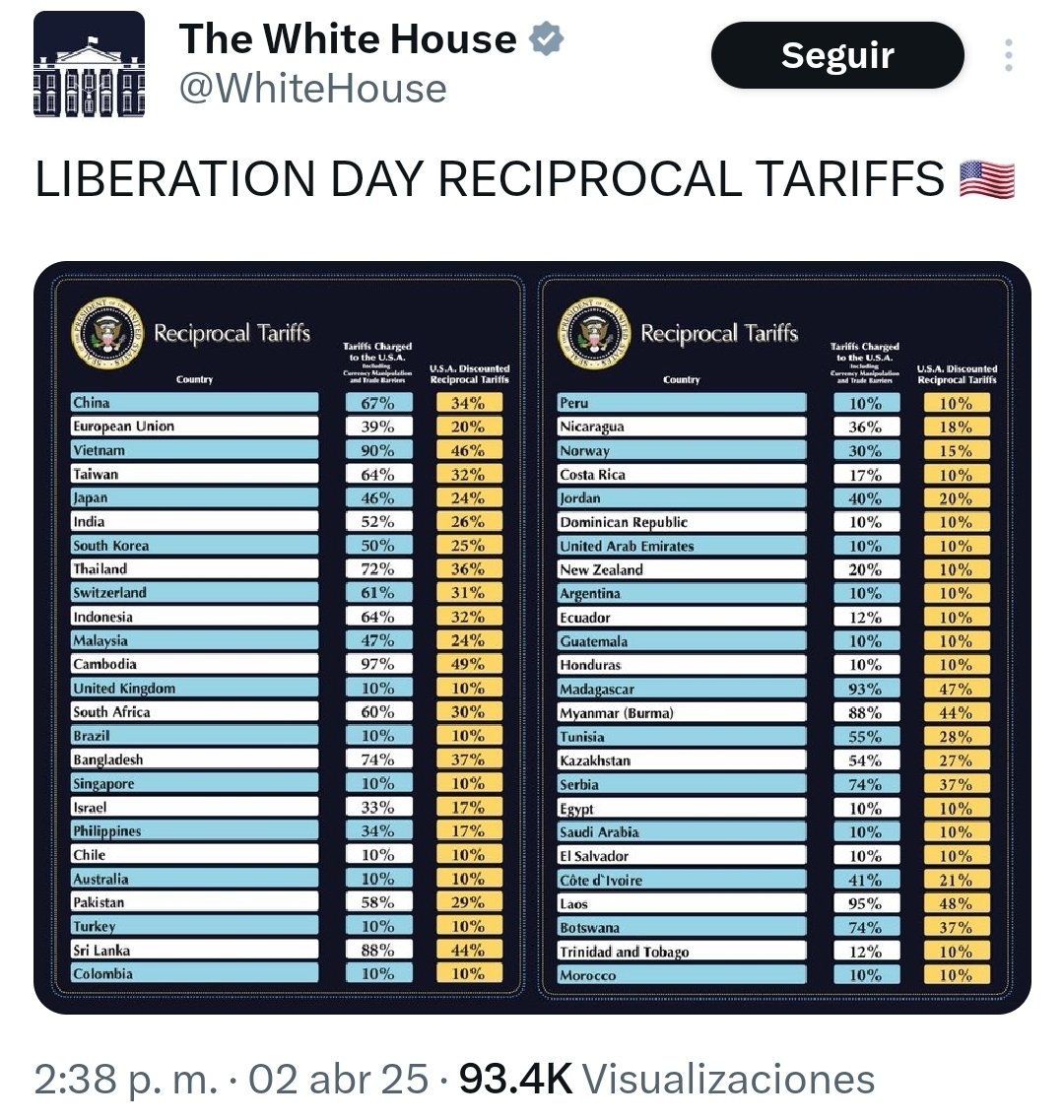 País | Tarifa a EU | Arancel impuesto |